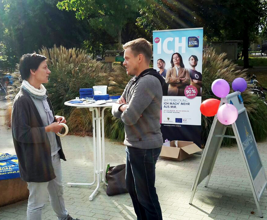 "Auch wenn das Wetter nicht immer mitgespielt hat, war die Spielplatzaktion wieder ein Erfolg", zieht Julia Schuster Fazit. Vom 4. bis 18. September konnten Interessierte unsere Regionalberater*innen auf vier prominenten Spieplätzen in Magdeburg antreffen, um sich direkt vor Ort zu Karrieremöglichkeiten, Jobperspektiven und zu Fragen der Vereinbarkeit von Familie und Beruf zu beraten. Während sich die Kinder austobten, nutzten viele Mütter und Väter die Chance, ihre Fragen an unsere Regionalberater*innen zu stellen oder um direkt einen Termin zu vereinbaren.