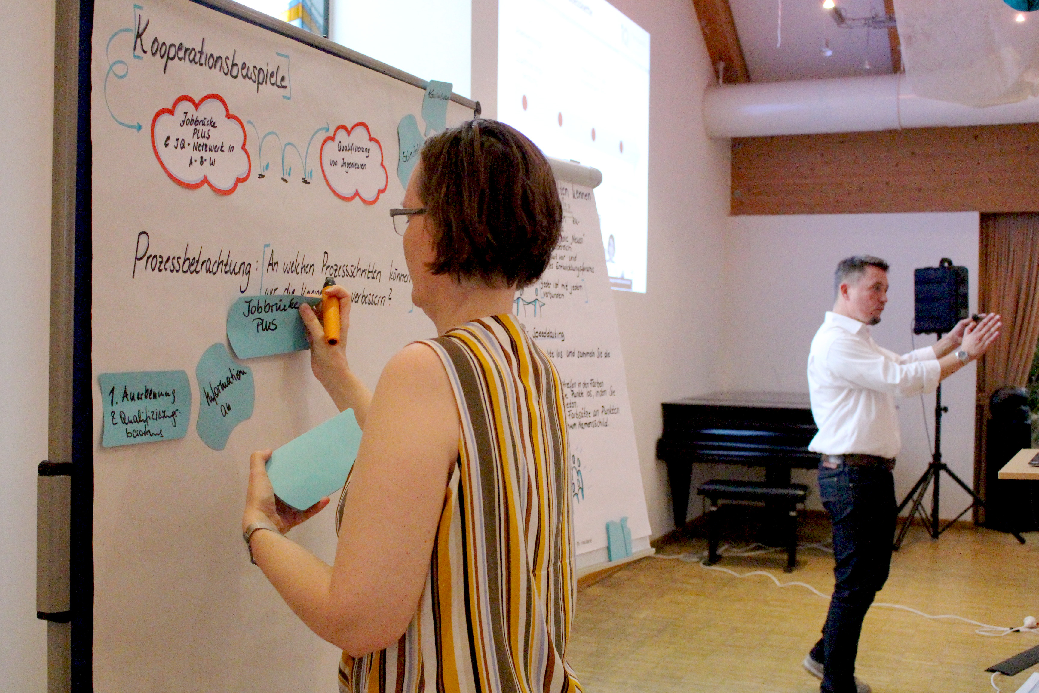 Wie wichtig der Austausch untereinander, auch über die Region ist, zeigte die Frage, wie man eine gute Zusammenarbeit über die regionalen Grenzen schafft, wenn Personen eine Arbeit im Tagespendelbereich aufnehmen. Wen muss man kontaktieren, um eine bestmögliche Begleitung für die Kund*innen zu erreichen? Auf regionaler Ebene kennt man sich. Doch auch hier ist es wichtig, in enger Kooperation für die Klient*innen da zu sein und im Sinne der Nachhaltigkeit regelmäßig, das Gespräch mit den Netzwerkpartnern zu suchen. In den diskutierten Fallbeispielen nutzte man direkt die Möglichkeit, beim Erfahrungsaustausch Lösungen zu finden oder gemeinsam neue Ideen zu entwickeln.