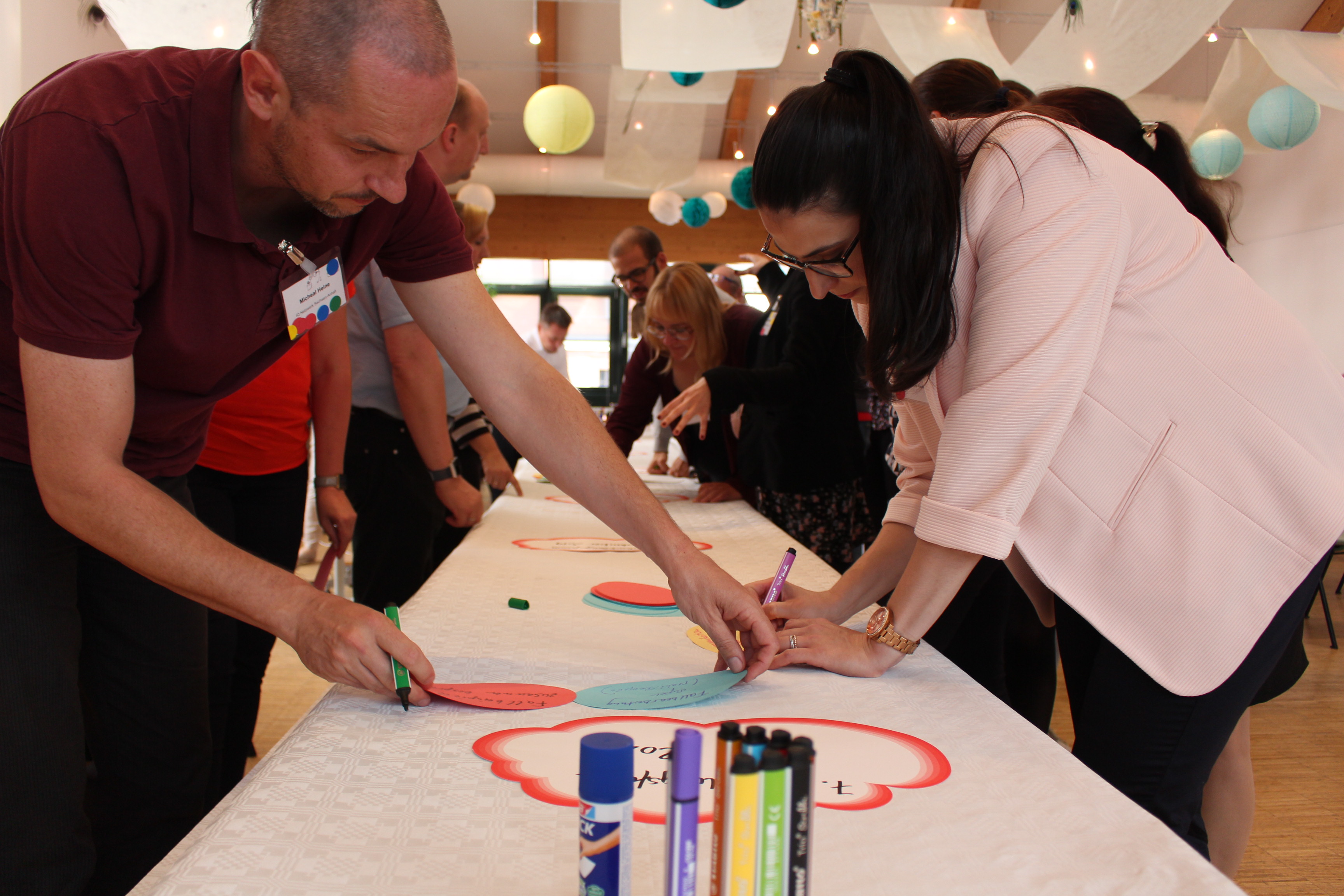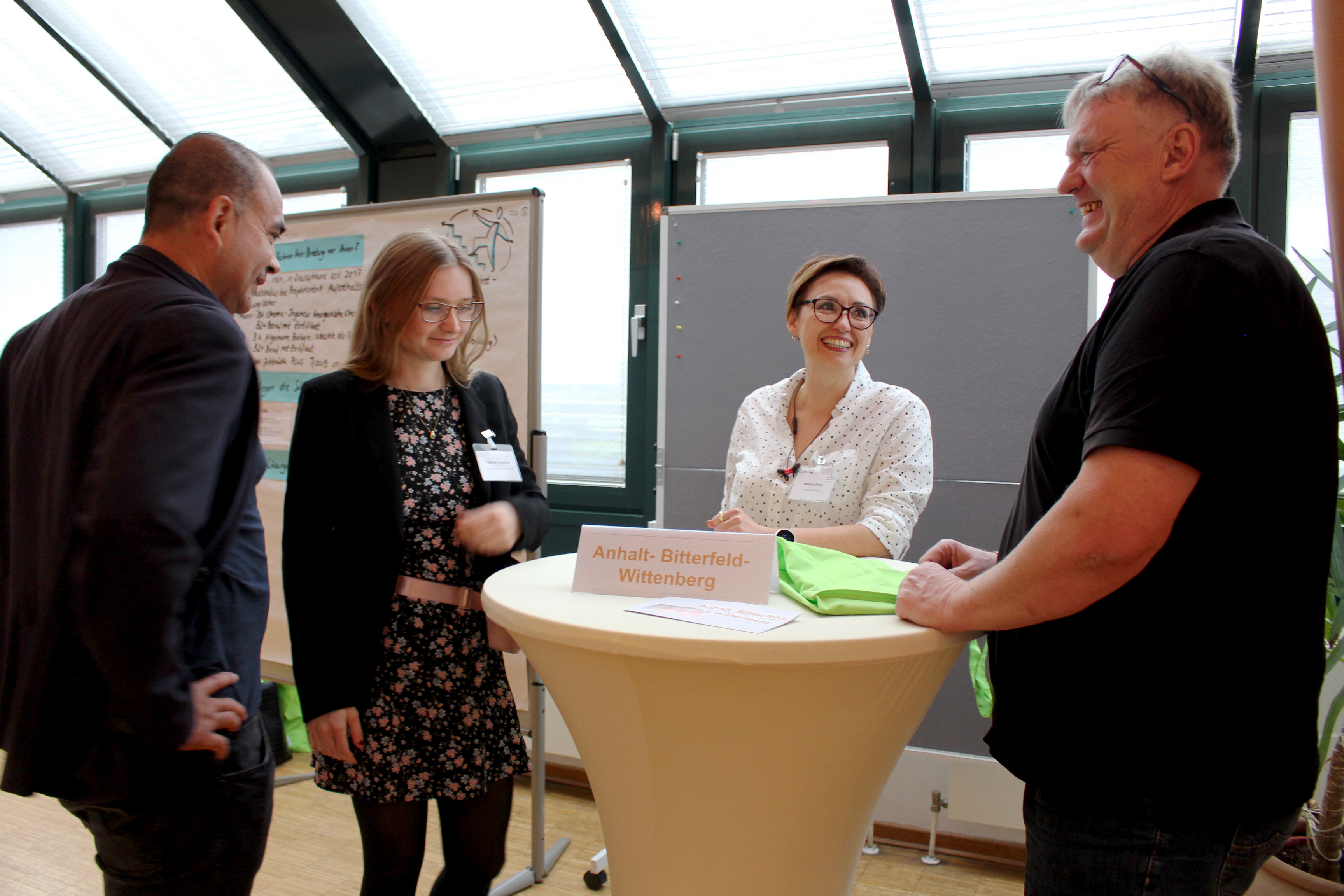 Das fängt schon mit den kleinen Dingen an. Wer ist neu im Team? Um alte und neue Pflänzchen im Netzwerk miteinander bekannt zu machen, um herauszufinden, wer Ansprechpartner*in in der Region ist, trafen sich die Teilnehmer*innen im ersten Schritt auf regionaler Ebene. Im zweiten Schritt wurde es bunt. Bewaffnet mit farbigen Klebepunkten für die Regionen Altmark, Anhalt-Bitterfeld, Harz, Magdeburg und Halle und dem Ziel, selbst Punkte aus allen Regionen zu sammeln, ging es nun darum, die Kolleg*innen außerhalb des eigenen Reviers kennen zu lernen. „Das war sehr angenehm. Ich bin bewusst auf die anderen zugegangen“, erklärte einer der neuen Mitarbeiter.