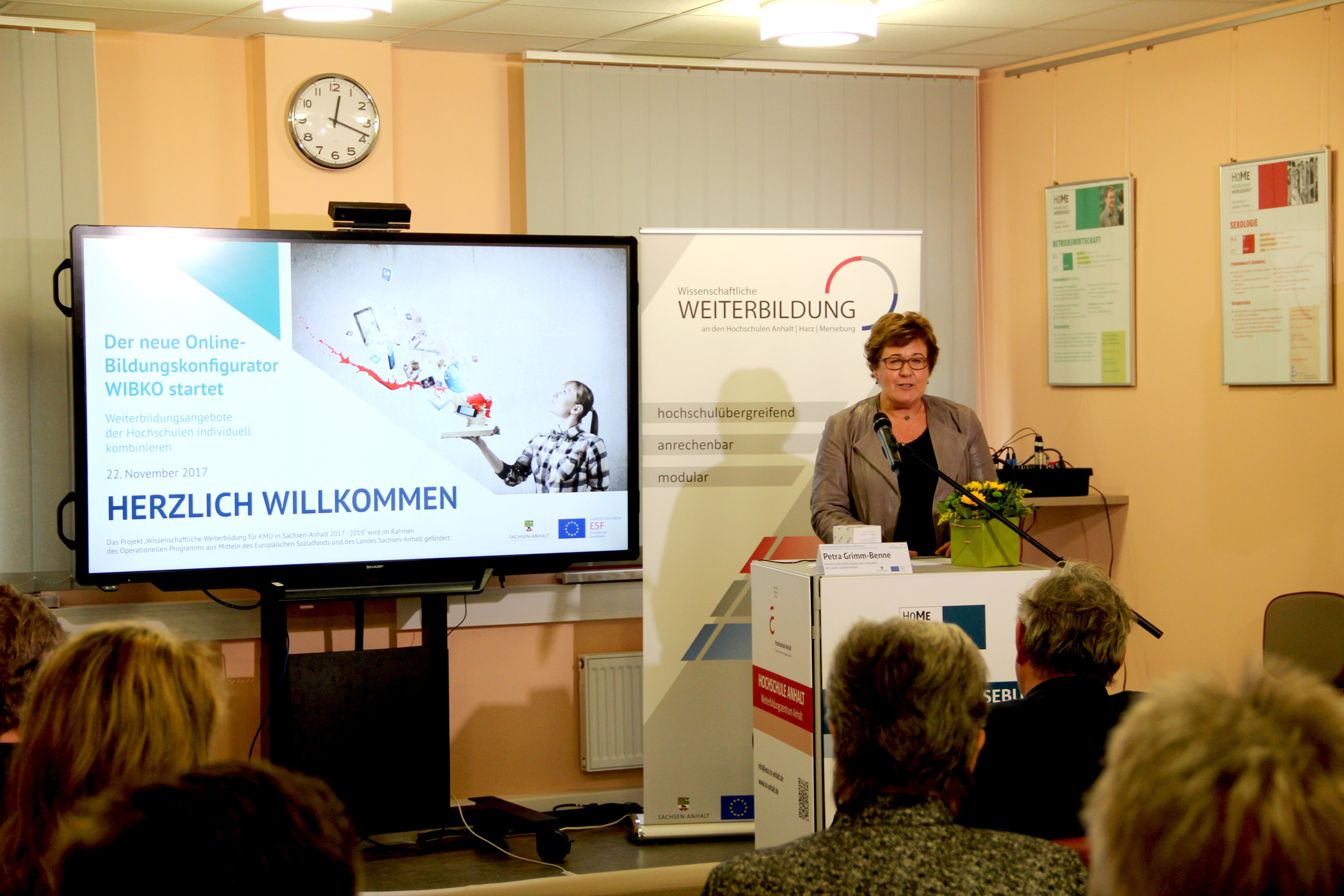 „Ab heute wird wissenschaftliche Weiterbildung so buchstabiert – WIBKO“, verkündete Prof. Dr. Hans-Jürgen Kaftan, Vizepräsident für Studium, Lehre und Weiterbildung der Hochschule Anhalt beim offiziellen Startschuss des neuen OnlineBildungskonfigurators WIBKO am 22. November in Merseburg. WIBKO steht für wissenschaftlich, individuell, berufsbegleitend, kombinierbar und online. „Weiterbildung ist wichtig für die Fachkräftesicherung in Sachsen-Anhalt. Mit der Schaffung des Konfigurators wurde ein Meilenstein zu einer zentralen und bürgernahen Weiterbildung gesetzt“, betonte Petra Grimm-Benne, Ministerin für Arbeit, Soziales und Integration des Landes Sachsen-Anhalts.