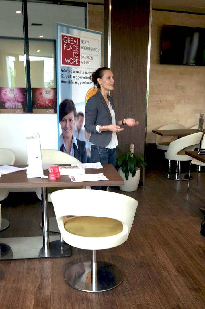 Unsere Regionalberaterin Antje Hoffleit stellte den interessierten Unternehmerinnen den Landeswettbewerb "Beste Arbeitgeber Sachsen-Anhalt" vor.